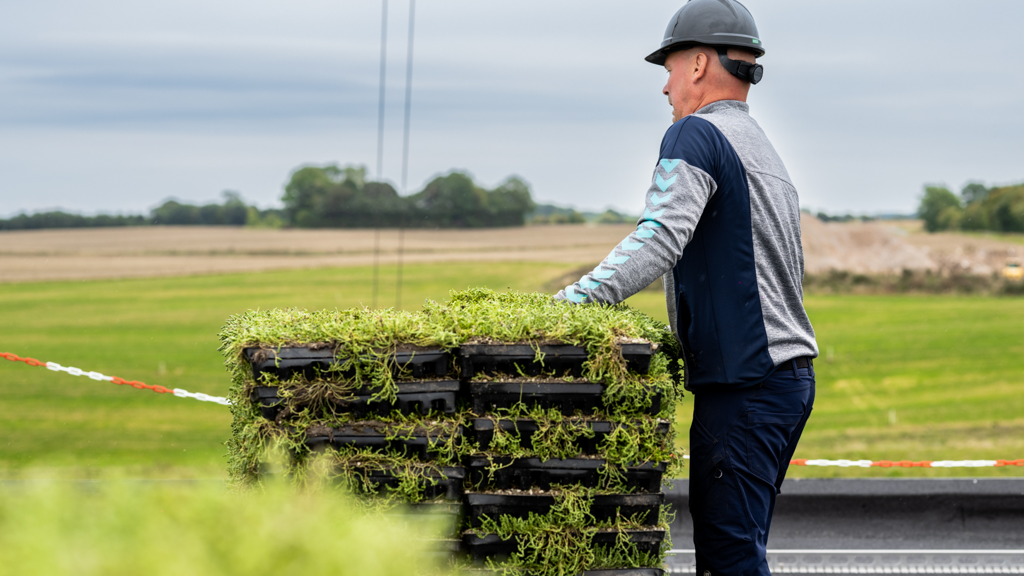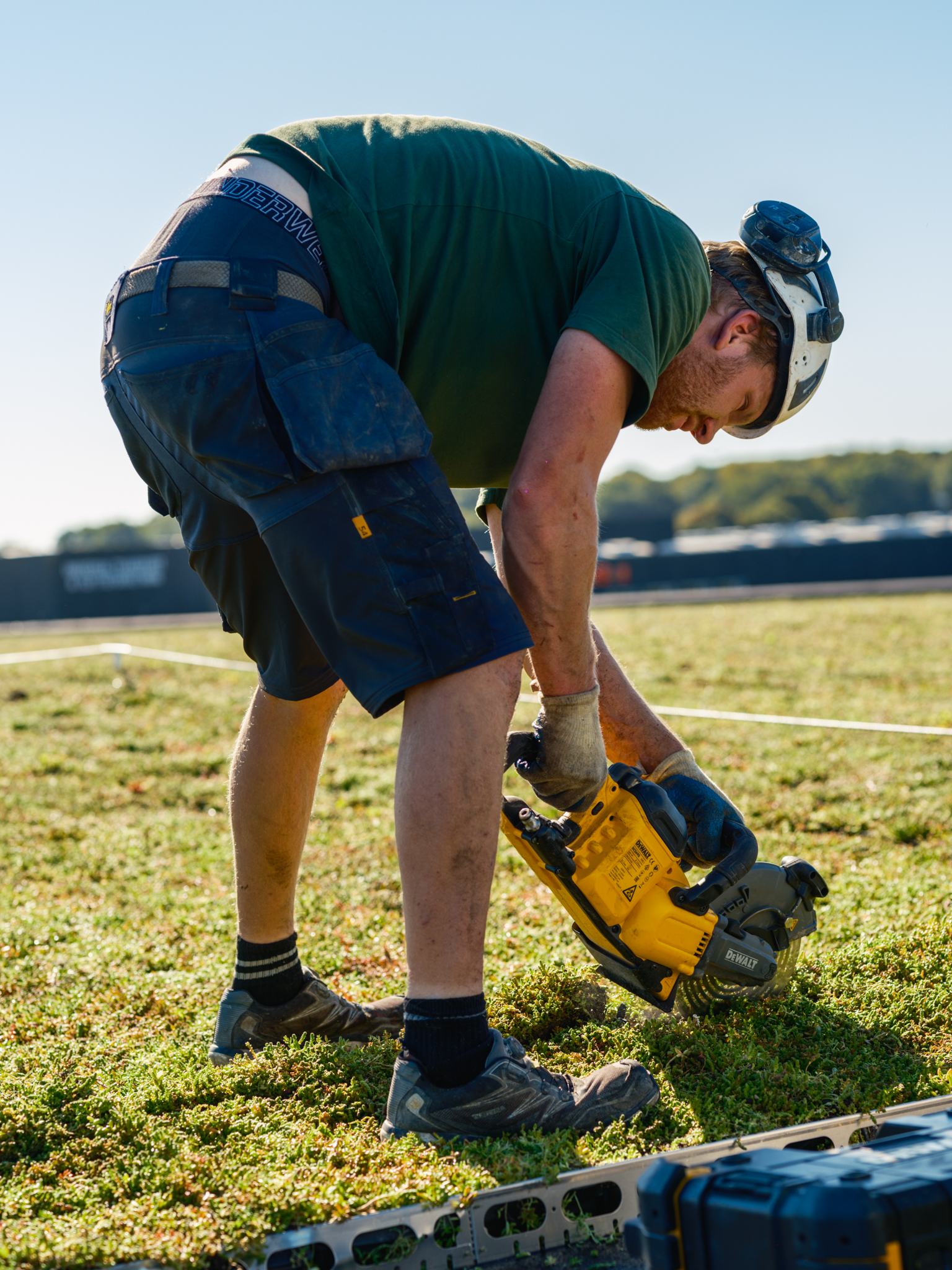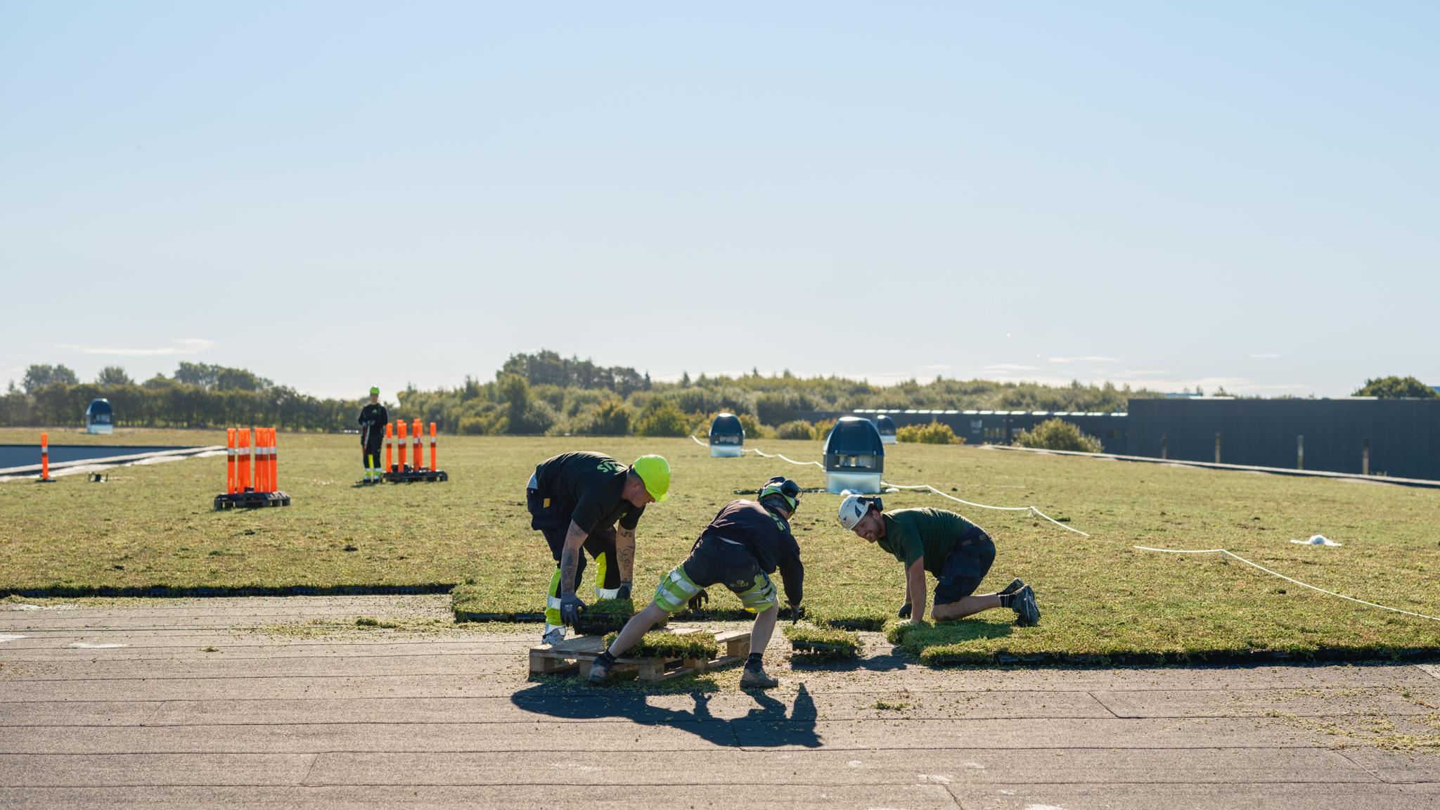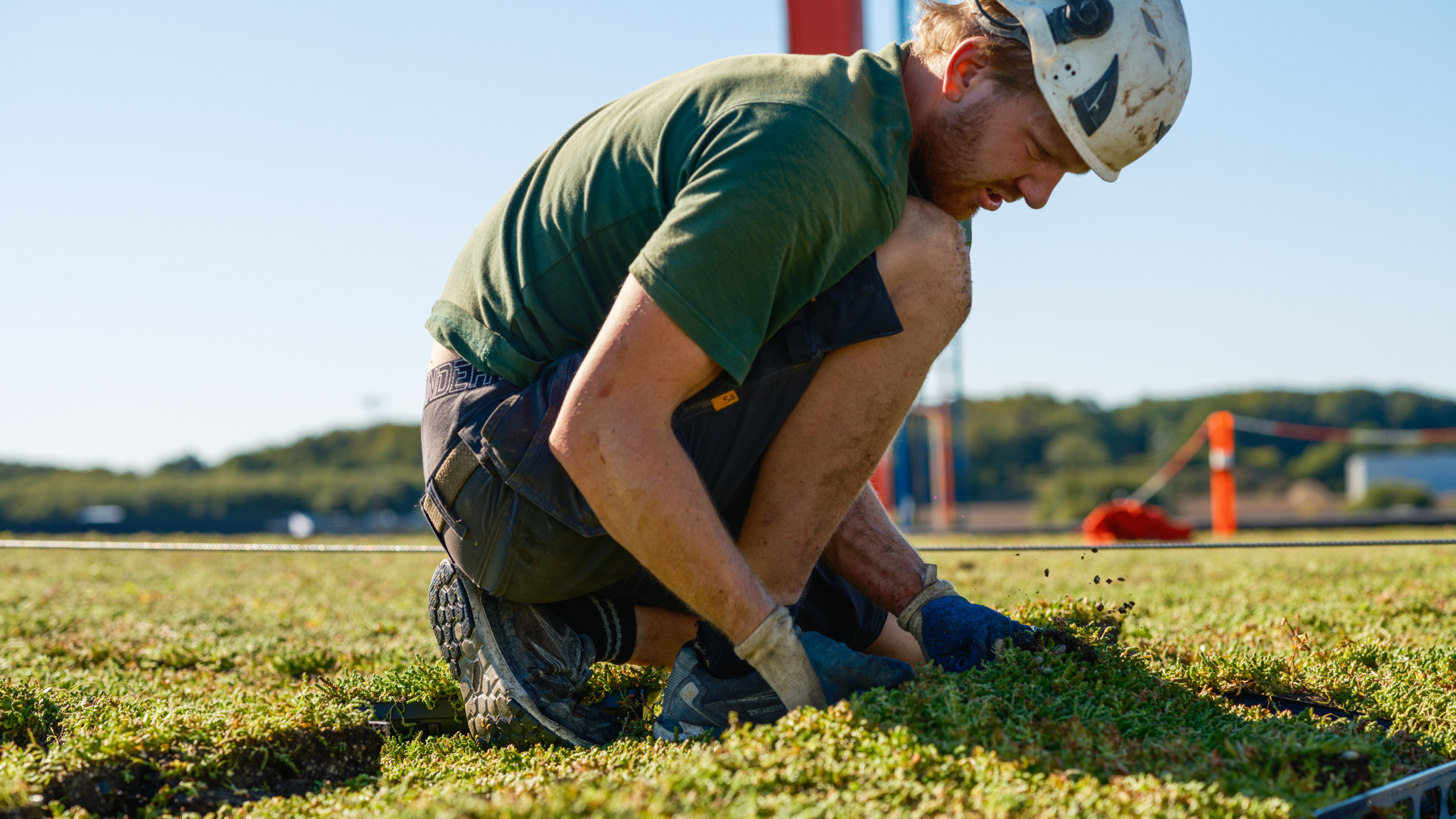 En person kan udlægge 40 m2 sedumbakketag i timen. Fotograf: Tina Sørensen, TS Art