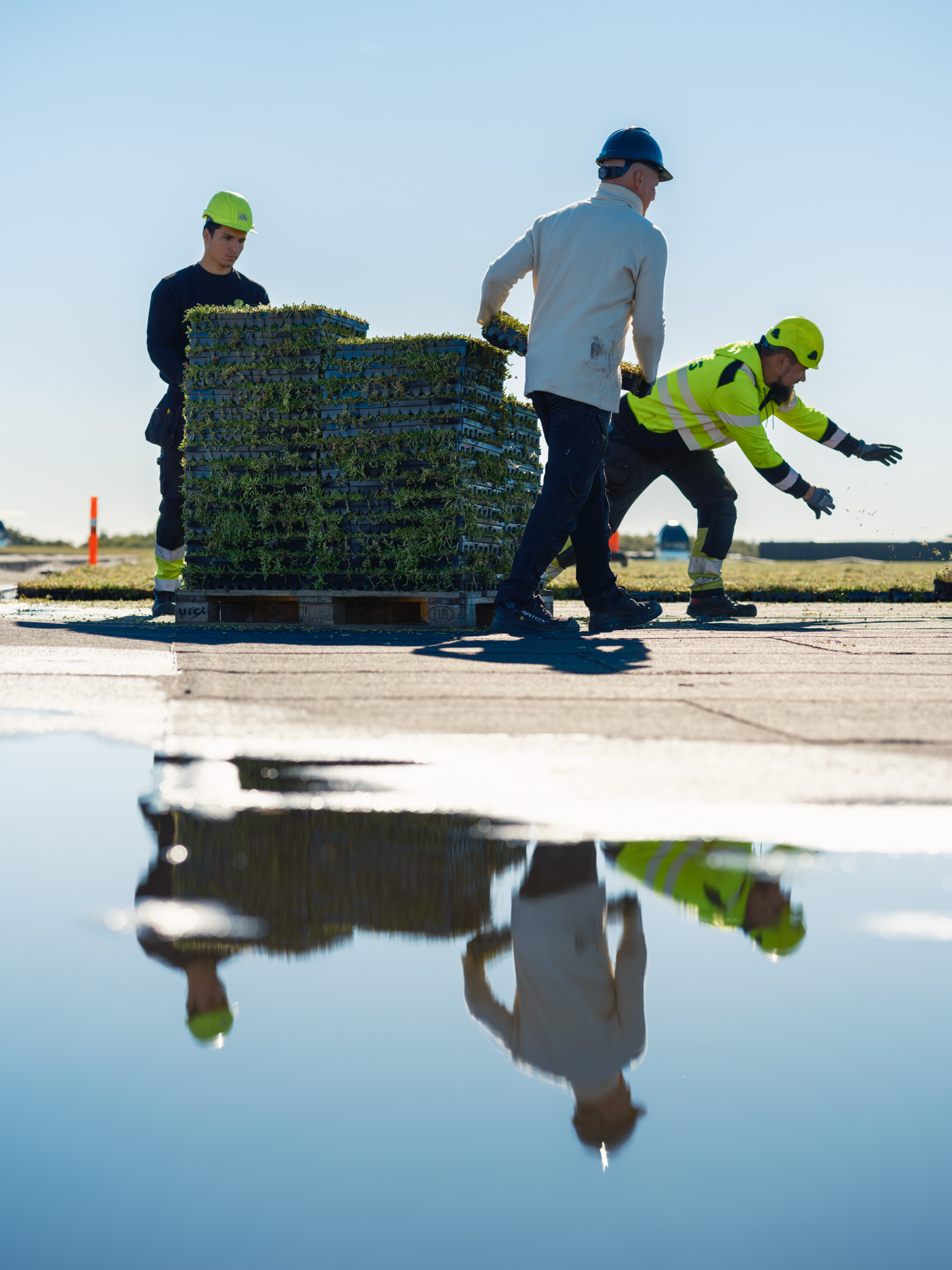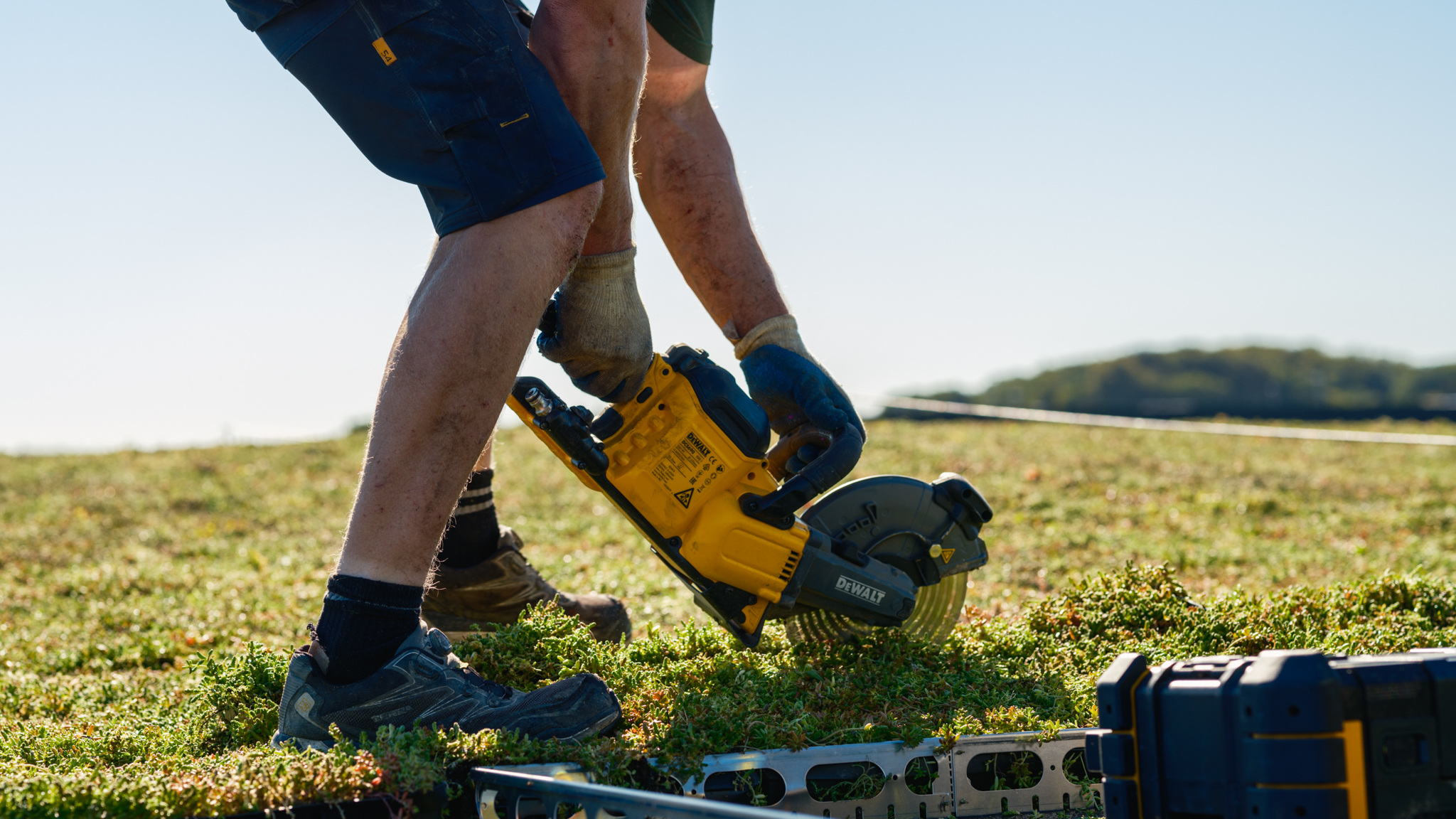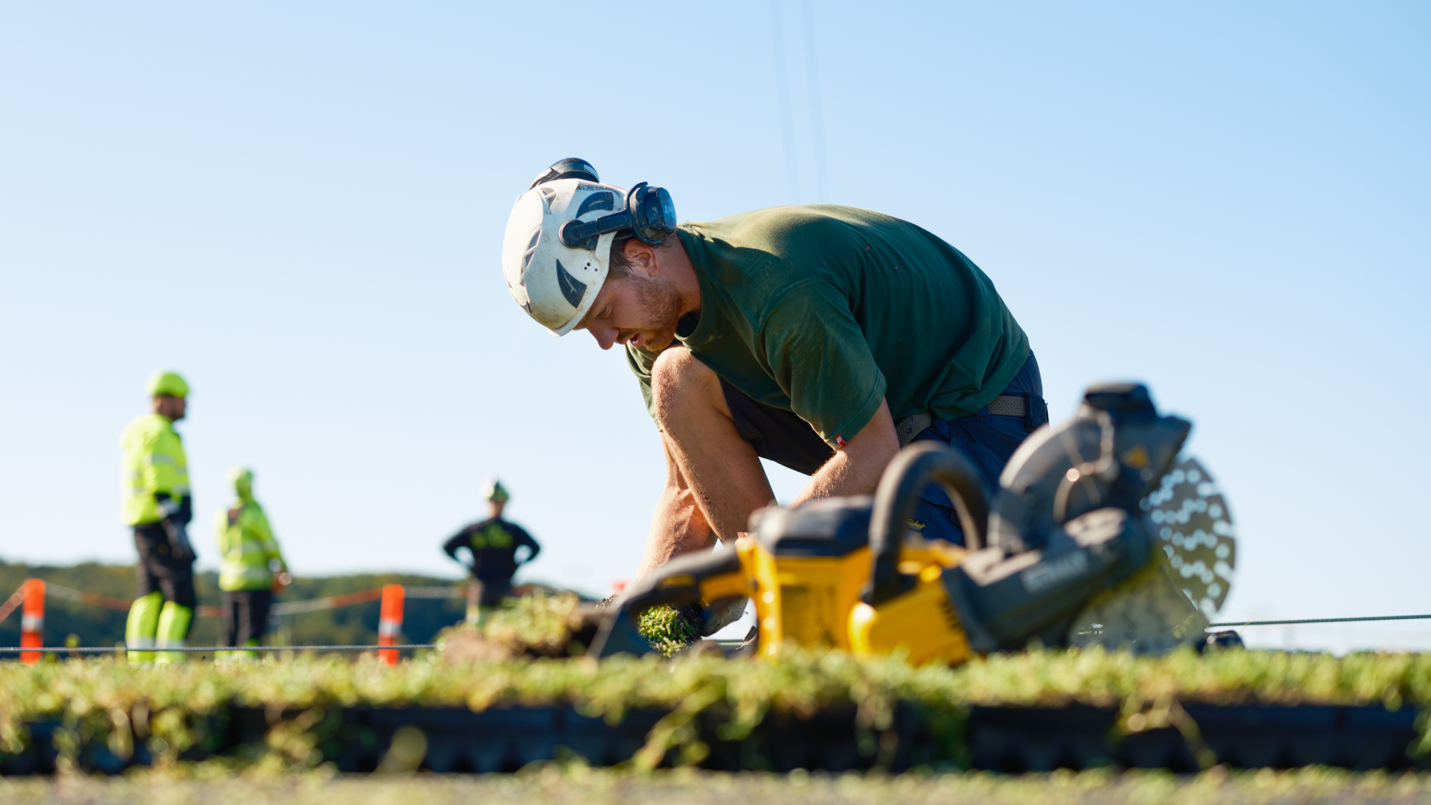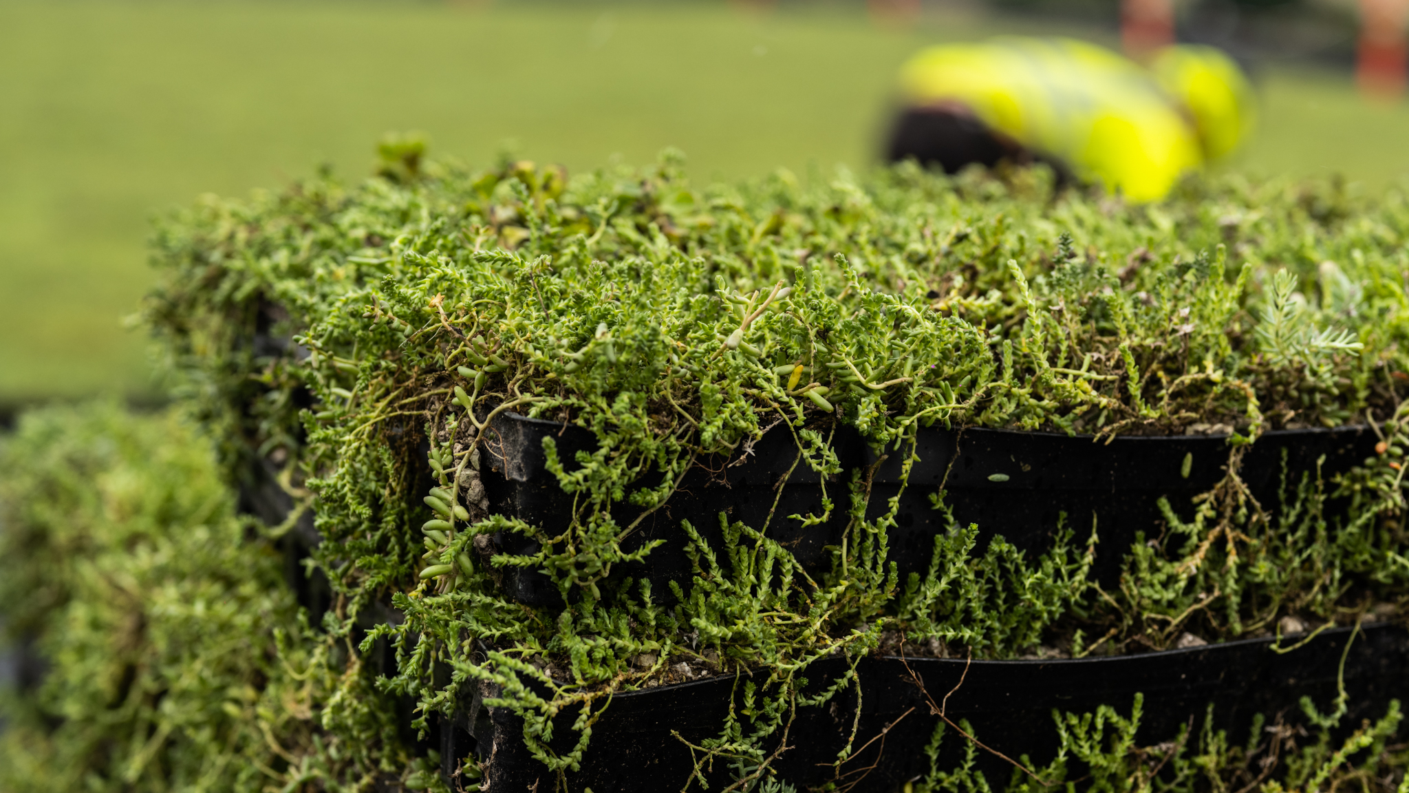 En person kan udlægge 40 m2 sedumbakketag i timen. Fotograf: Tina Sørensen, TS Art