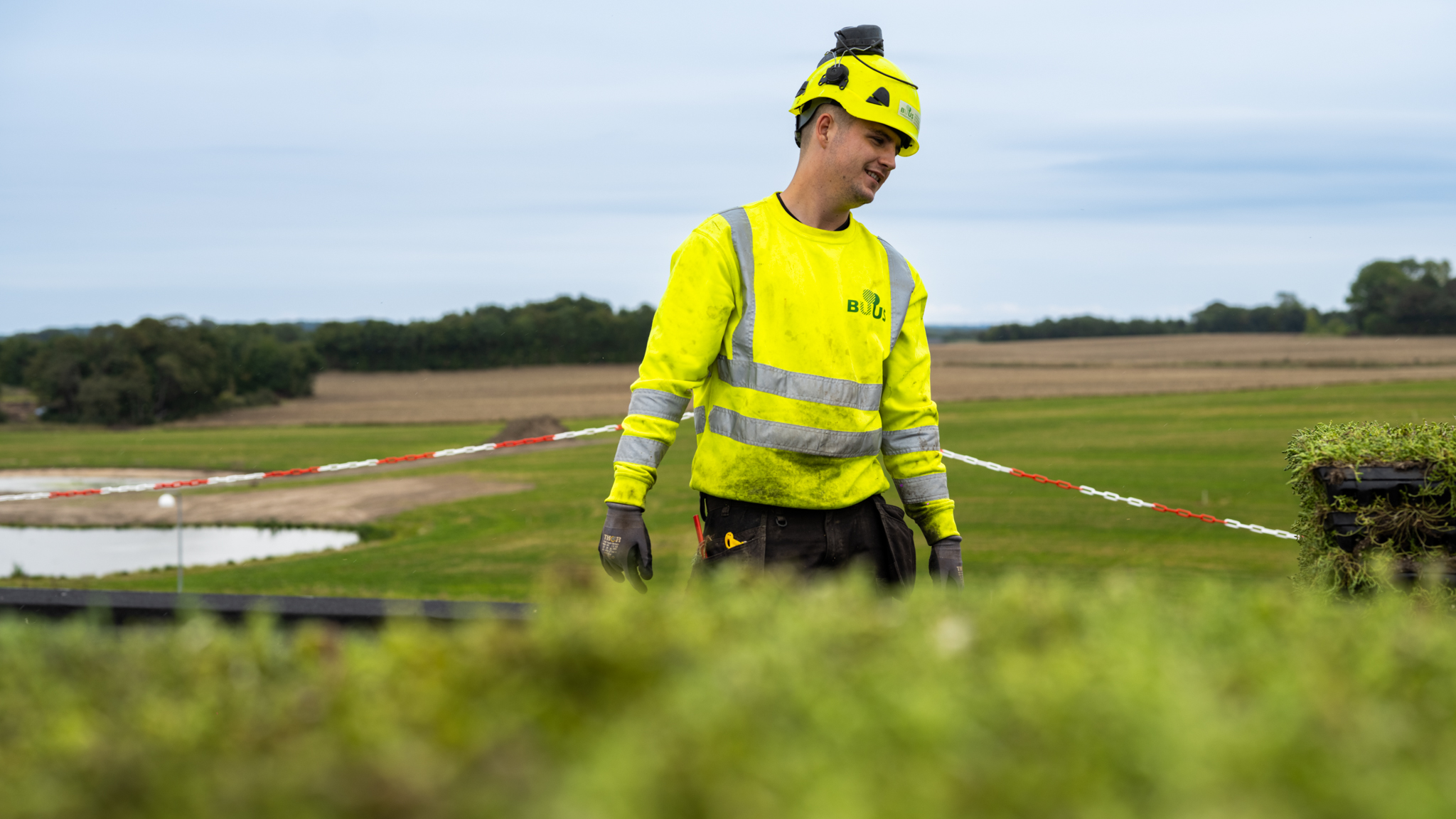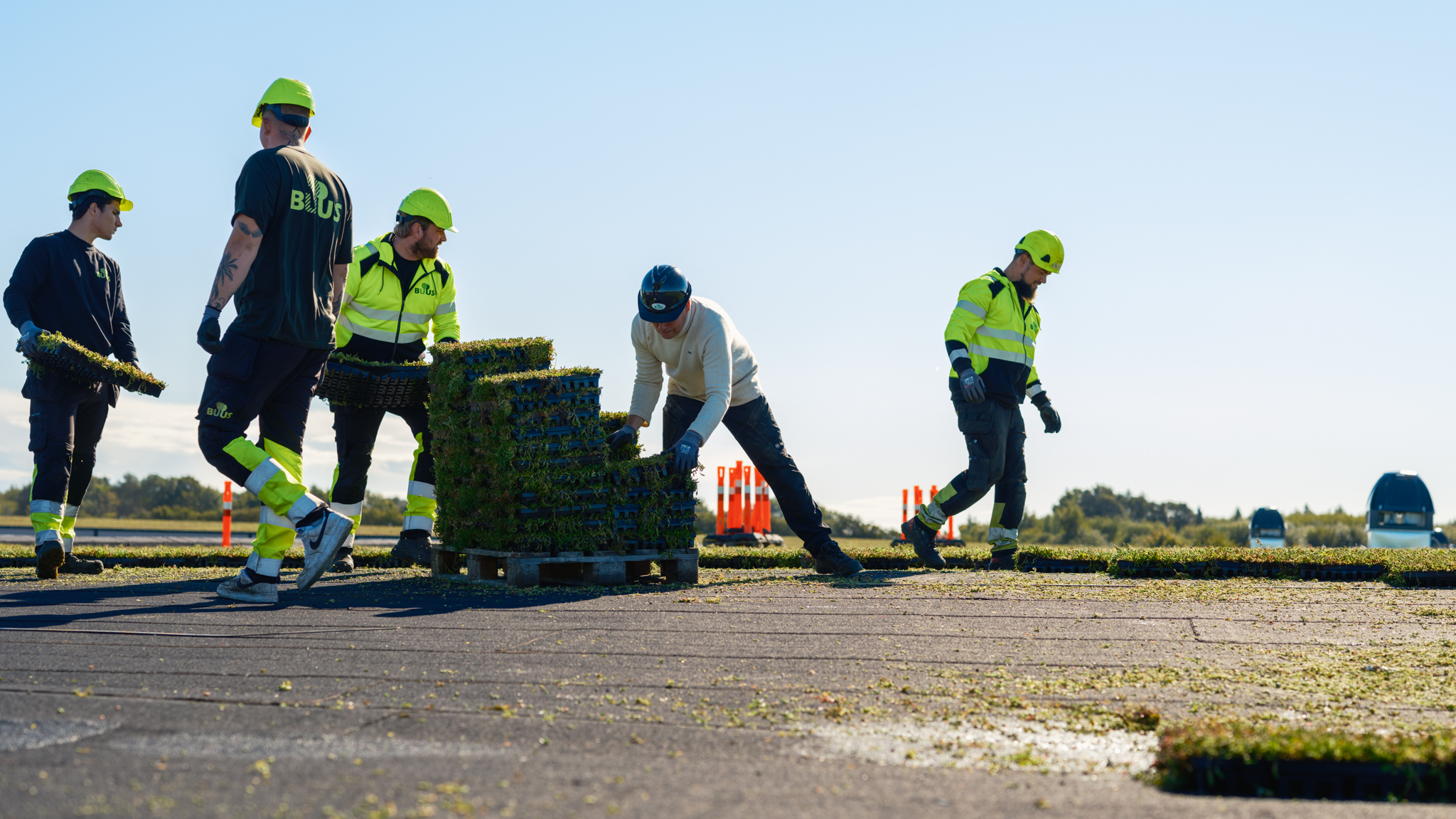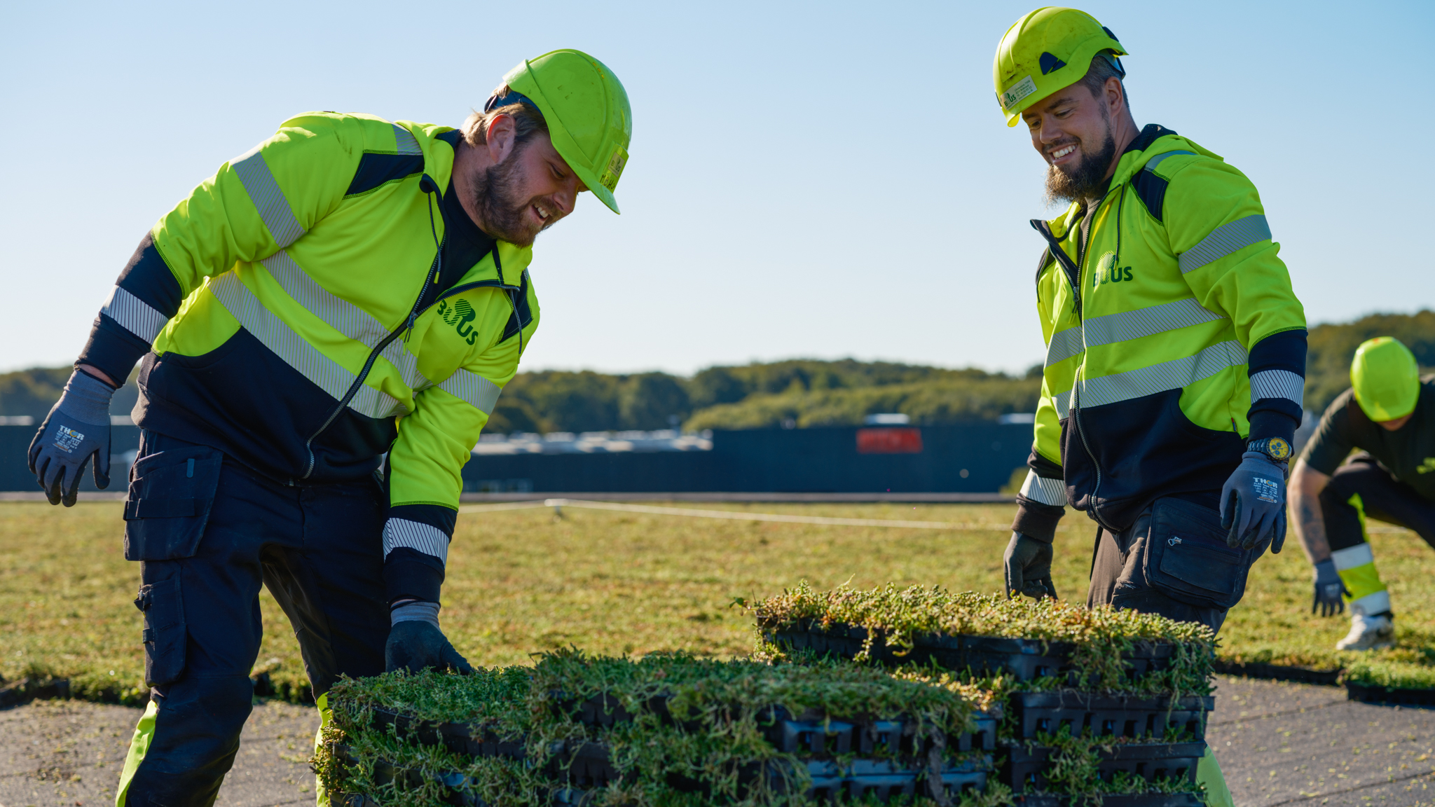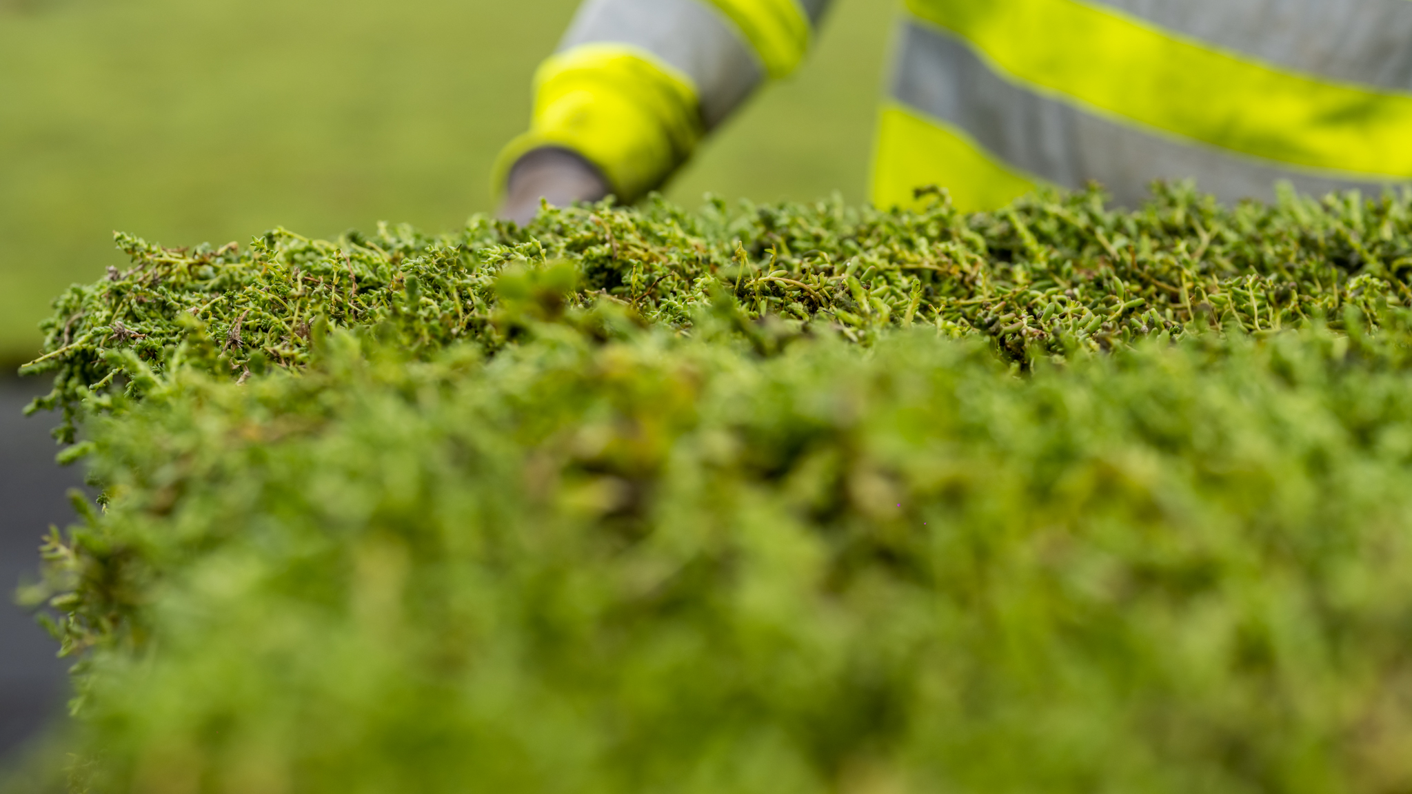 En person kan udlægge 40 m2 sedumbakketag i timen. Fotograf: Tina Sørensen, TS Art