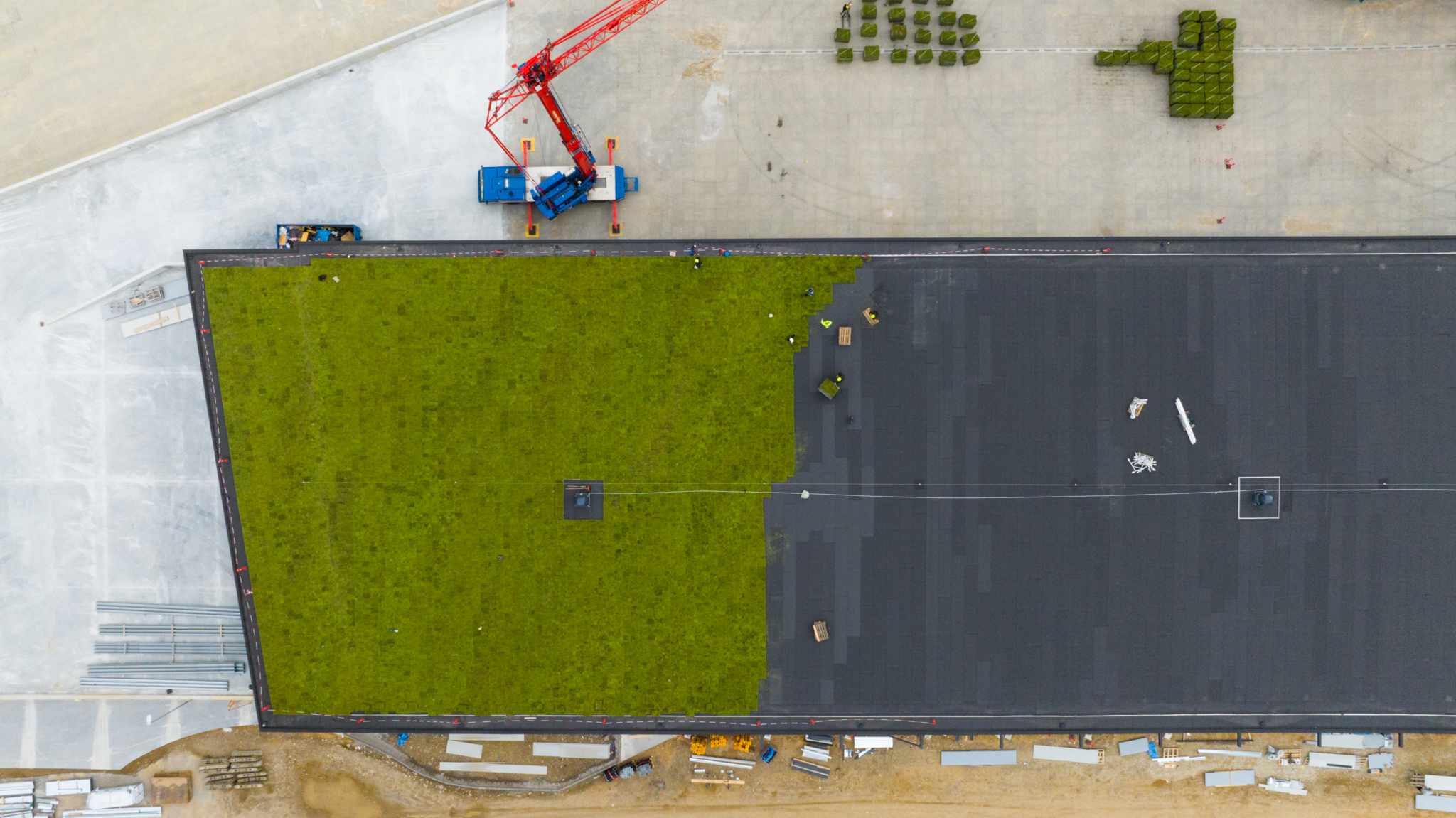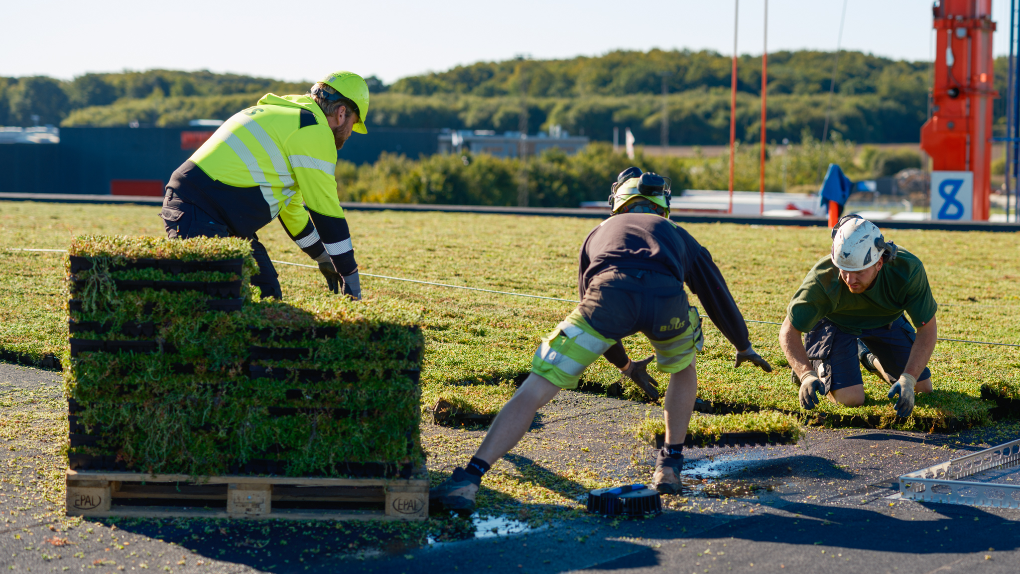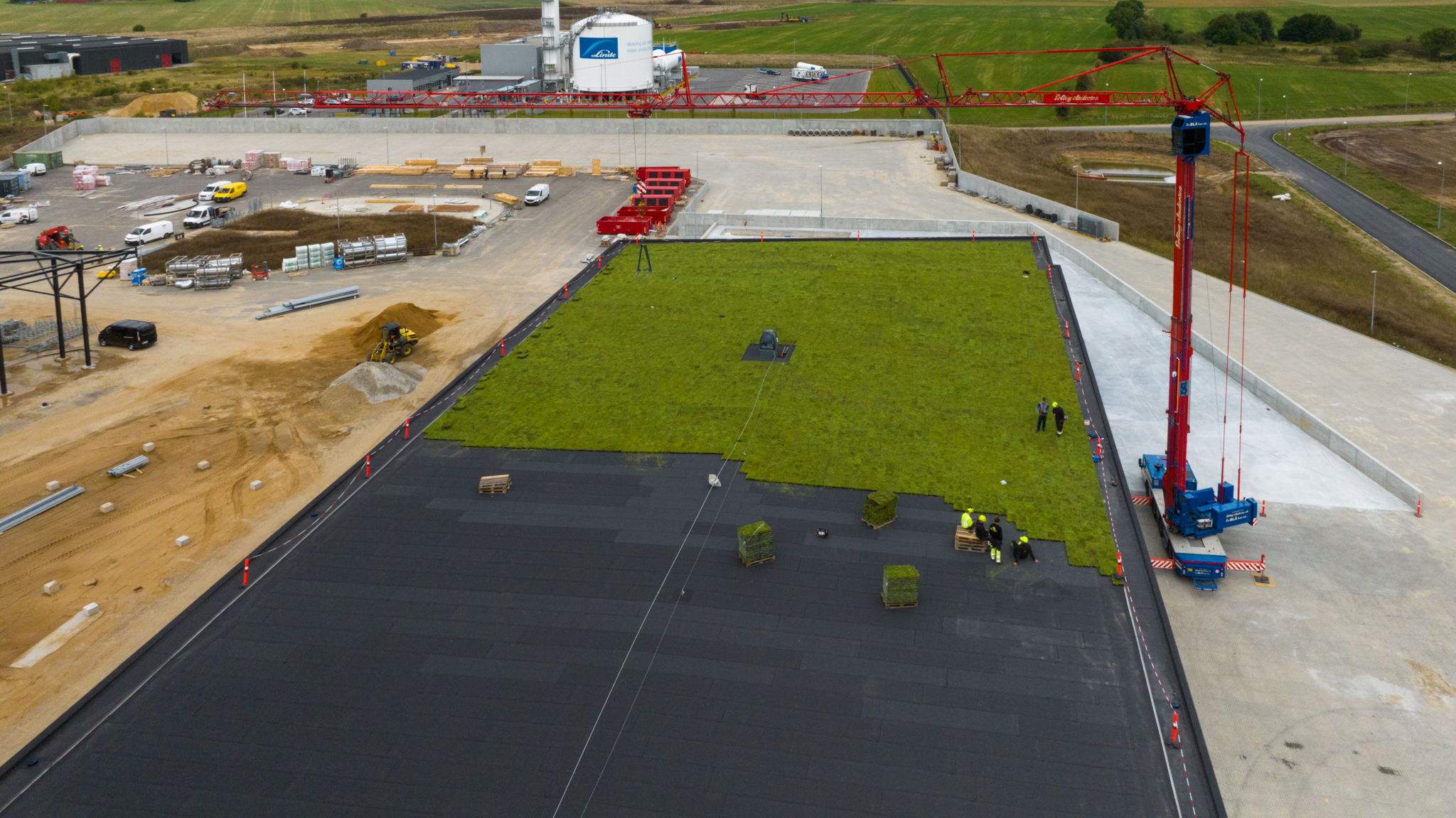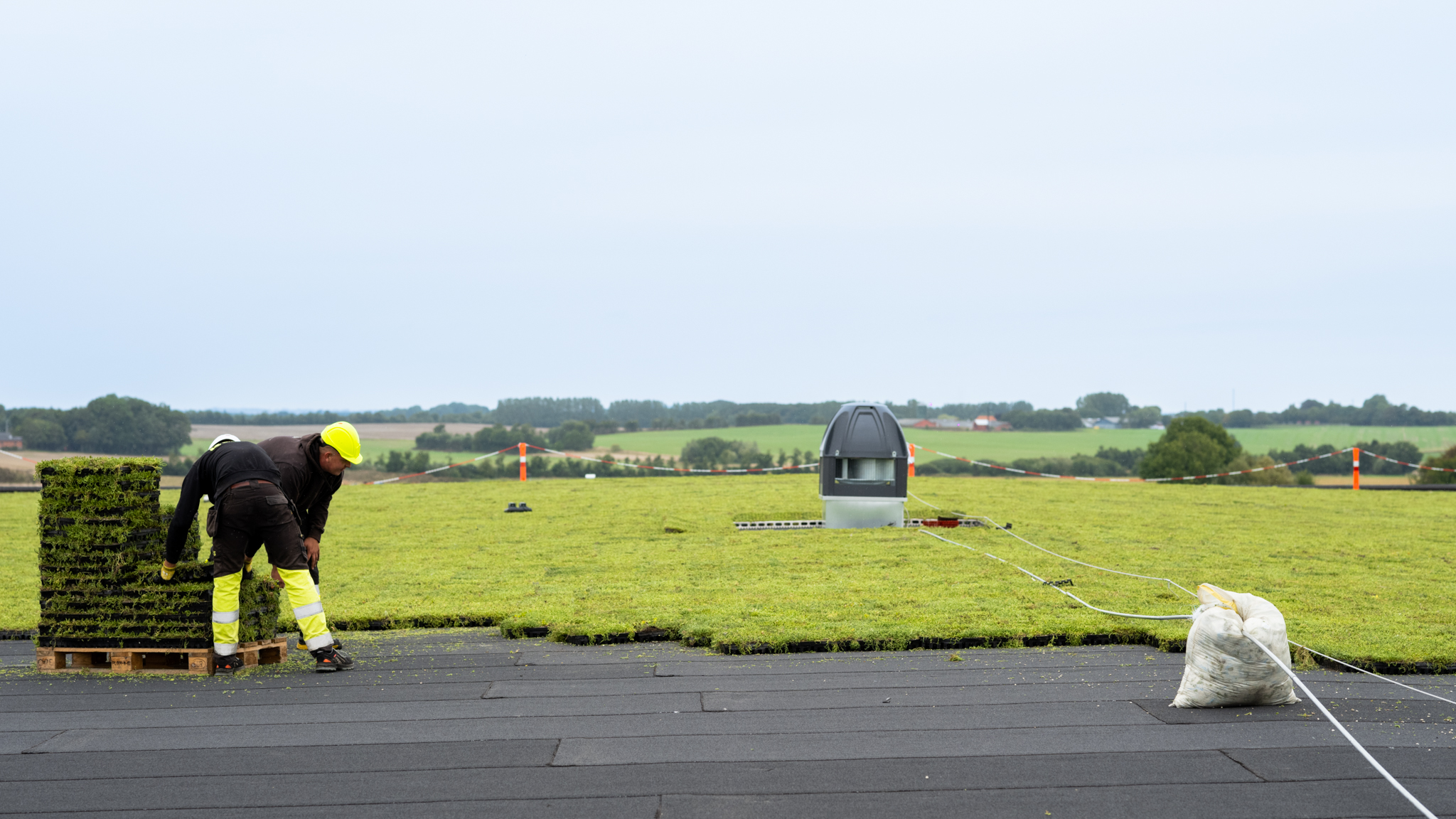 Danmarks største grønne tagflade på toppen af RessourceCenter Vejle