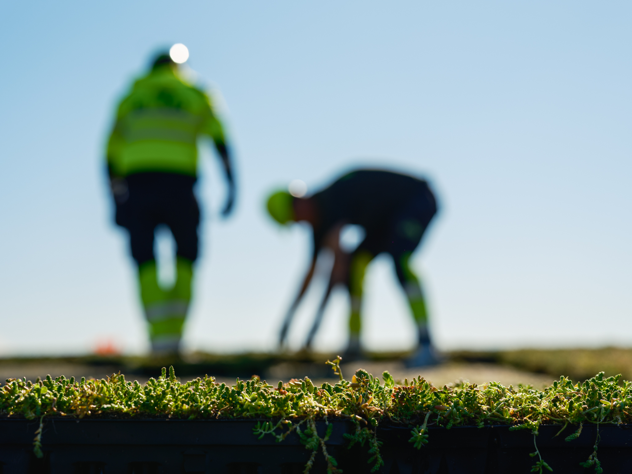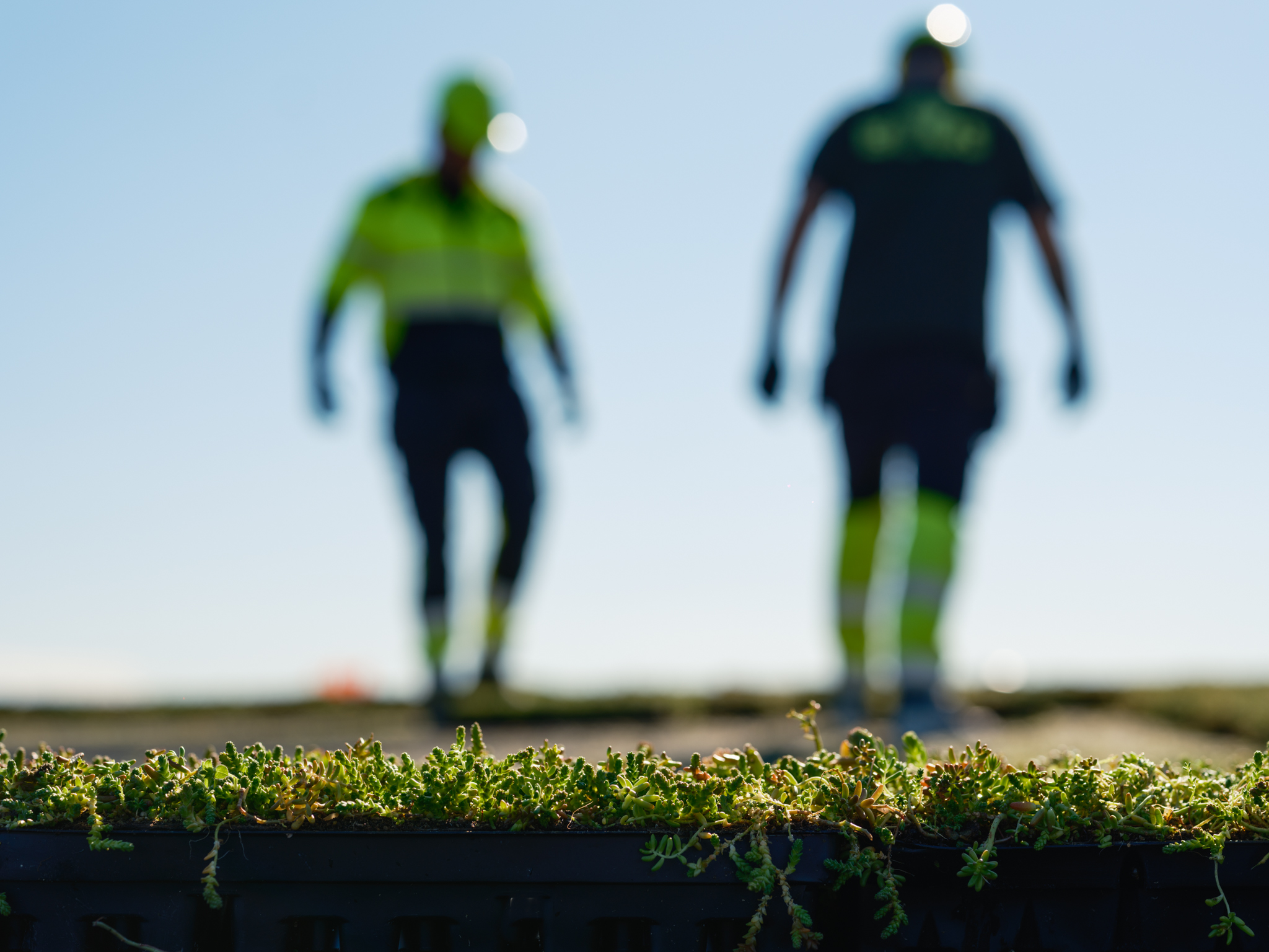 En del af visionen for RessourceCenter Vejle er etableringen af det grønne tag. Taget består af sedumbakker fra BG Byggros, som er en enkel og praktisk måde at etablere et grønt tag på.