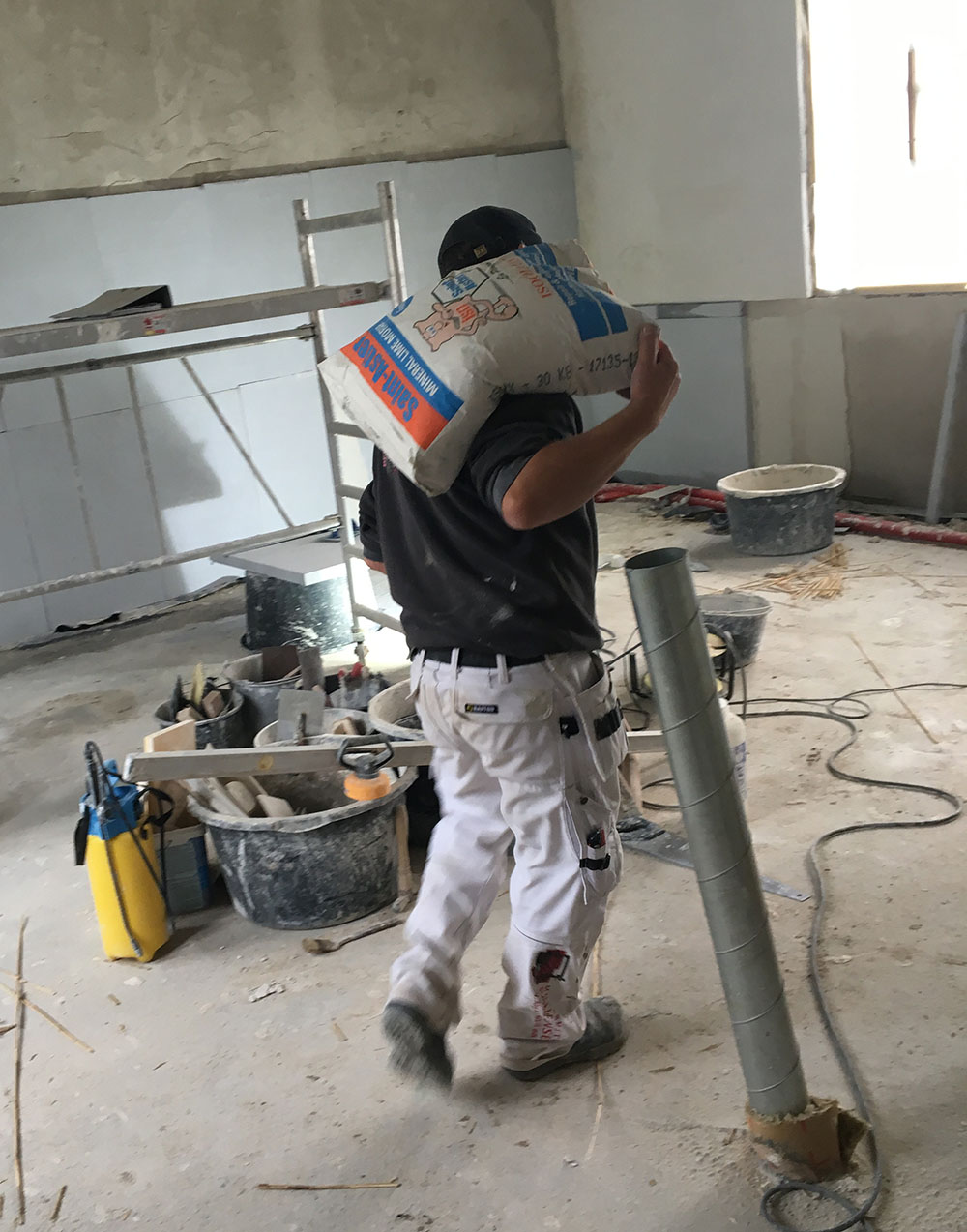 På Lindvedgård valgte man en indendørs efterisoleringsløsning, Calsitherm KALK, der både isolerer, fugtregulerer og hindrer skimmelvækst. Calsitherm Kalk er en samlet diffusionsåben løsning der består af Calsitherm isoleringsplader opsat med St. Astier Isochaux kalkmørtel.